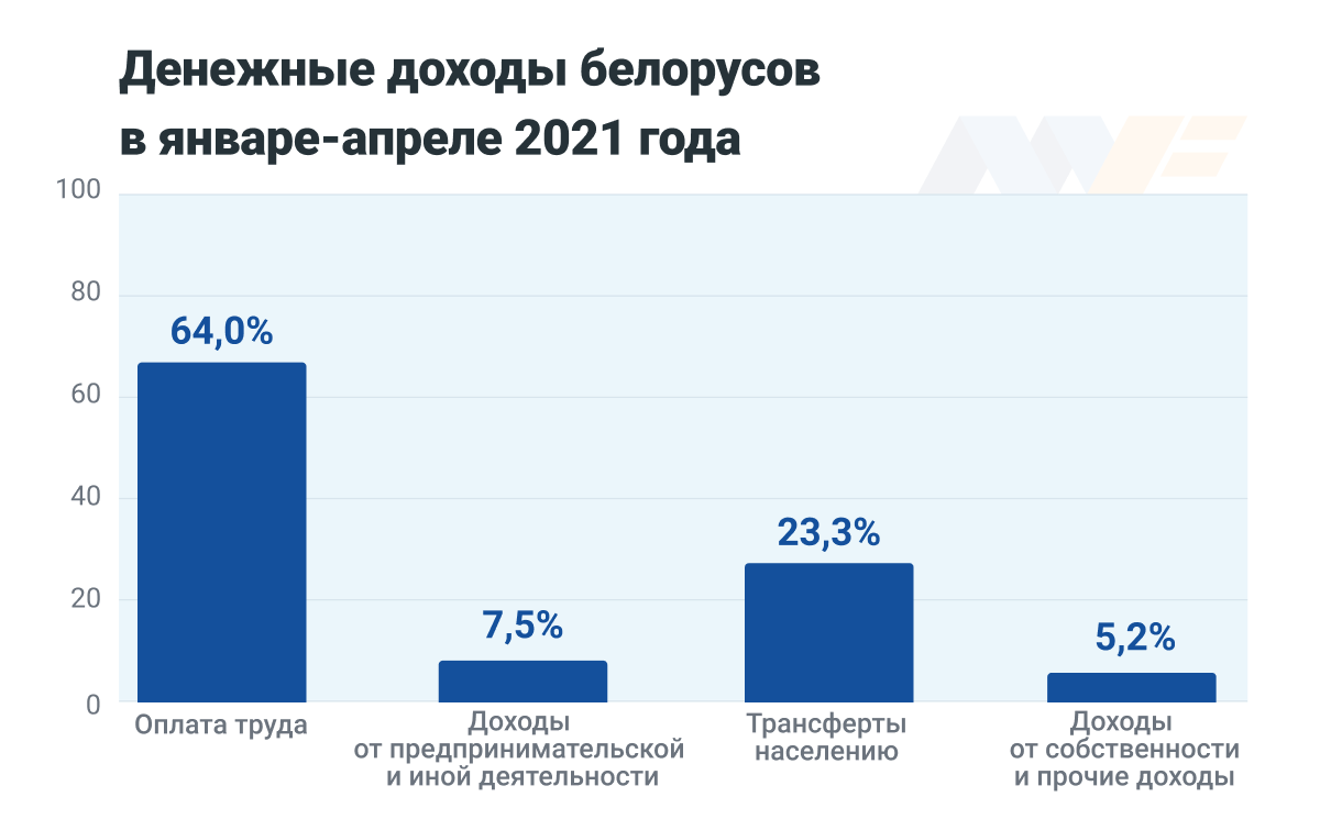 Реальные располагаемые денежные доходы населения Беларуси в январе - апреле 2021 года составили 103,4% к уровню аналогичного периода 2020 года. Об этом сообщает Белстат.