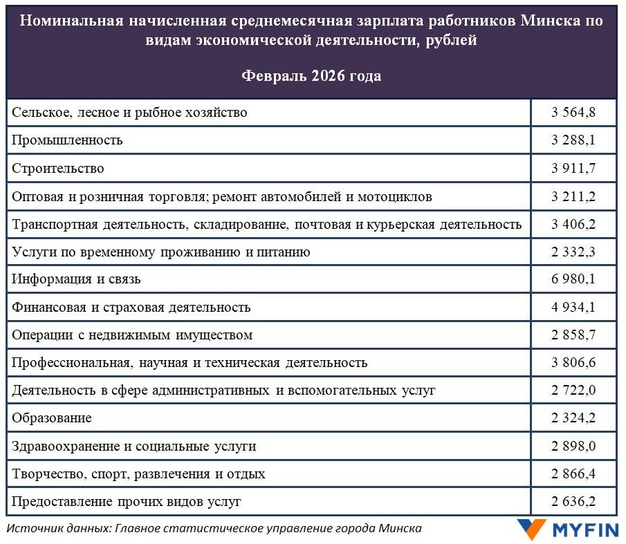 В феврале 2026 года в Минске средняя зарплата (до вычета налогов и взносов) составила 3660,7 руб.