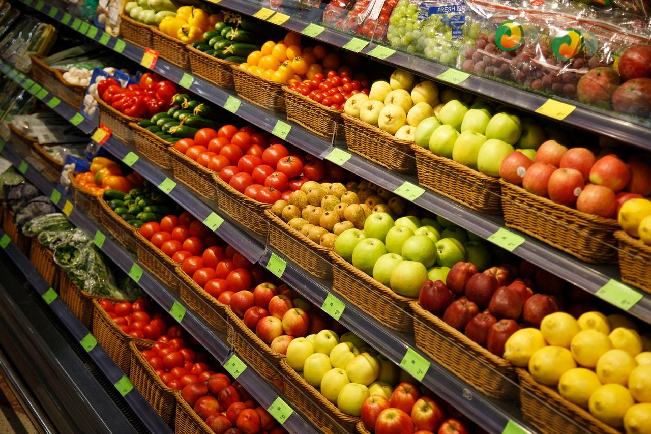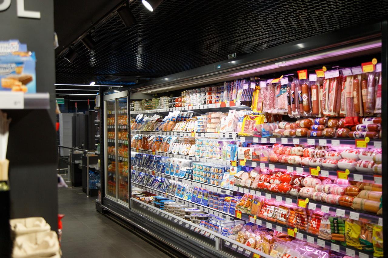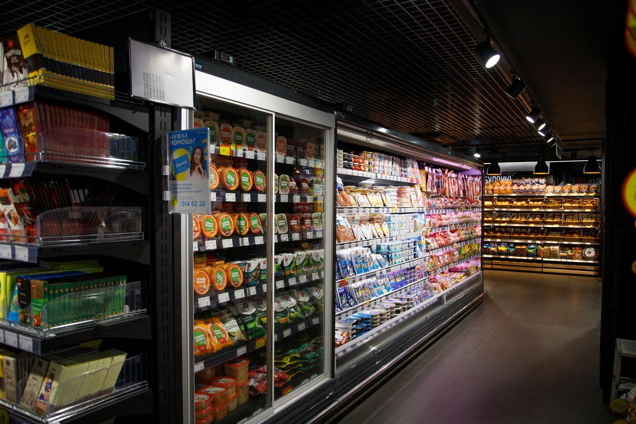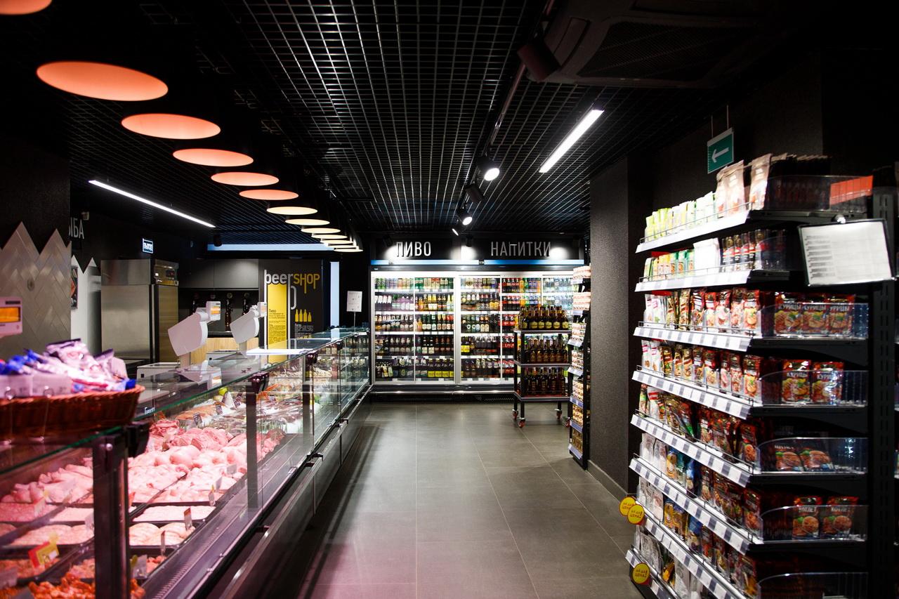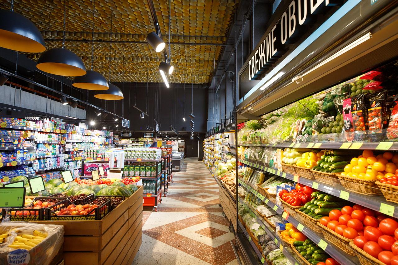 Хорошо представлены зона фруктов и овощей, хлебобулочный отдел и кулинария с продукцией собственного производства: с готовыми салатами, суши, блинчиками, запеканками и полуфабрикатами.