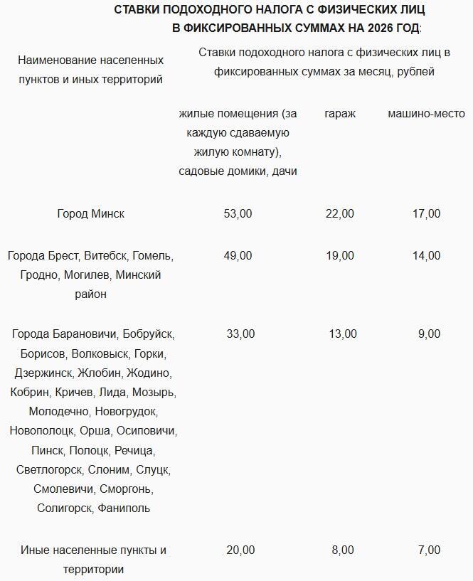 В крупных городах (Бобруйск, Лида, Молодечно, Новополоцк, Солигорск и др.) налог составит 33 руб.
