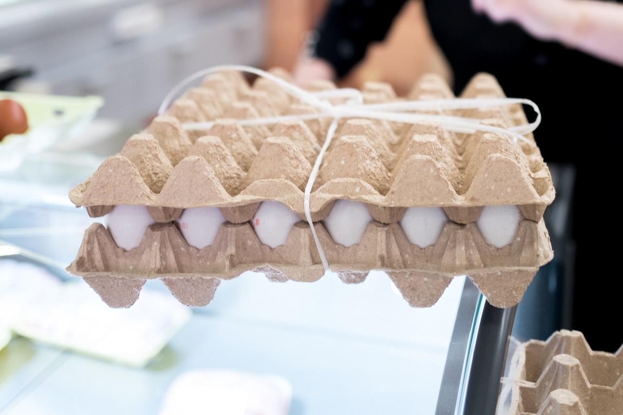 Куда же без яиц! Здесь их берут целыми лотками по 25 штук. Потому что свежие и, если уж написано С0, то размер соответствует – действительно крупные. Точек с яйцами сразу несколько, обращайте внимание на наклейки с процентом скидки.