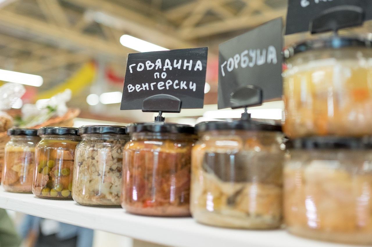 Привлекает внимание точка фермерского хозяйства Oleandr – тут вкусные не только сами деликатесы, но и скидка в 15%. Производители используют необычную французскую технологию су-вид, запекают продукты (в основном мясо) особым образом и запечатывают в вакууме. Тут и говядина, и язык с горошком, и курочка с морковкой, и перловка с лисичками. Берем две банки по 350 г за 19 рублей и в дополнение – 700 г квашеной капусты за 8 рублей.
