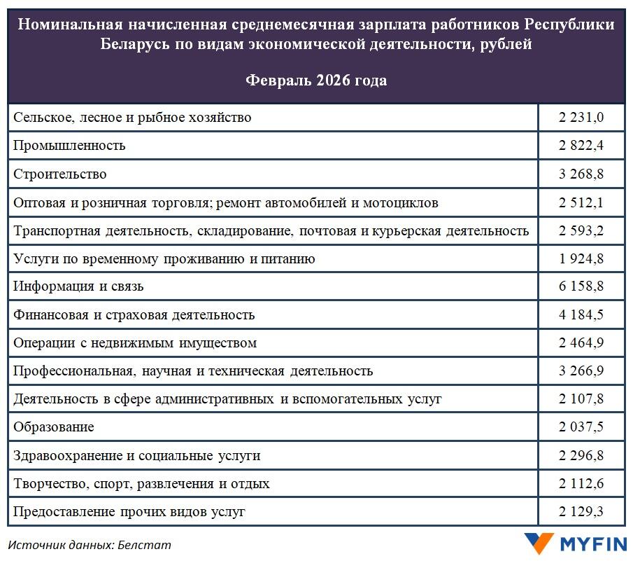 По данным Белстата, средняя зарплата в Беларуси в феврале 2026 года составила 2743 руб.