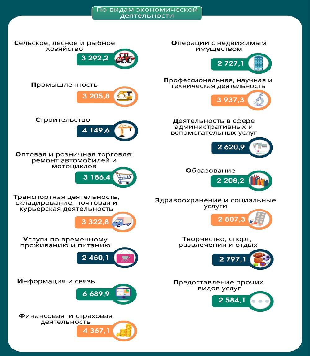 Среди видов экономической деятельности по-прежнему лидирует сфера «Информация и связь» – 6689,9 руб.