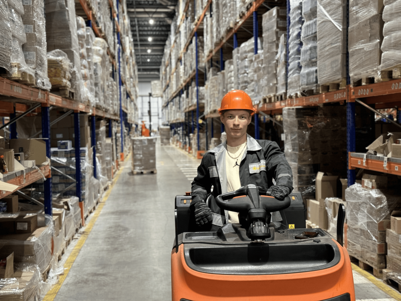 Евгений Паслед, работающий комплектовщиком с 2019 года, также доволен условиями труда, постоянно обновляющимся оборудованием и техникой, которая используется на распределительном центре. «В основном это напольная безрельсовая техника: как обычные электротележки, так и электроштабелеры. Пользуемся мы и терминалами сбора данных», — рассказывает он.