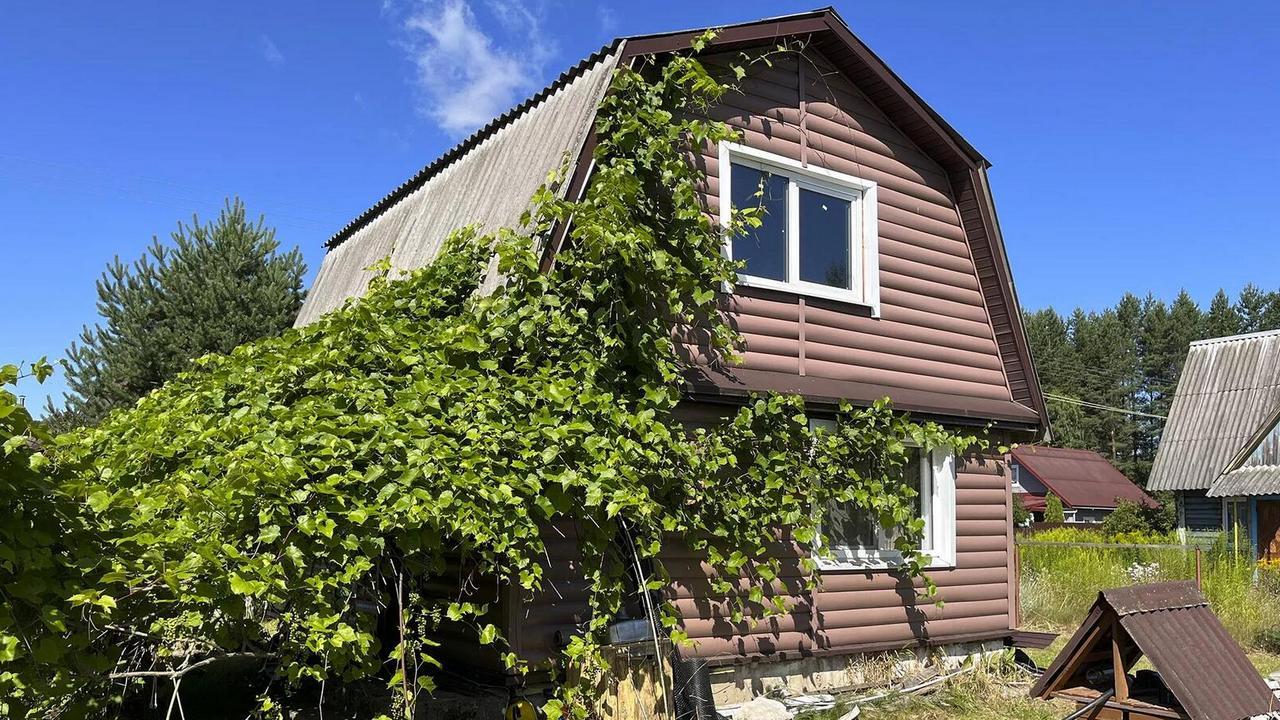 На участке в 6,2 сотки стоит блочный оштукатуренный садовый домик с мансардным этажом. Земля в частной собственности. Есть сезонный водопровод и электричество.