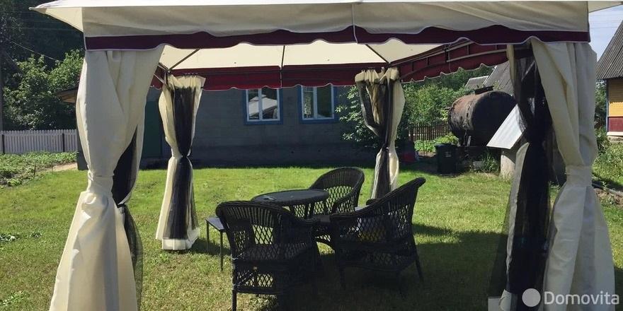 Это коттедж в агрогородке Нарочь для семей, компаний и «неагрессивных животных», как пишет автор объявления. В вашем распоряжении будет мангал, беседка, гамак, батут и детская площадка с песочницей, а под заказ обещают вытопить баню.