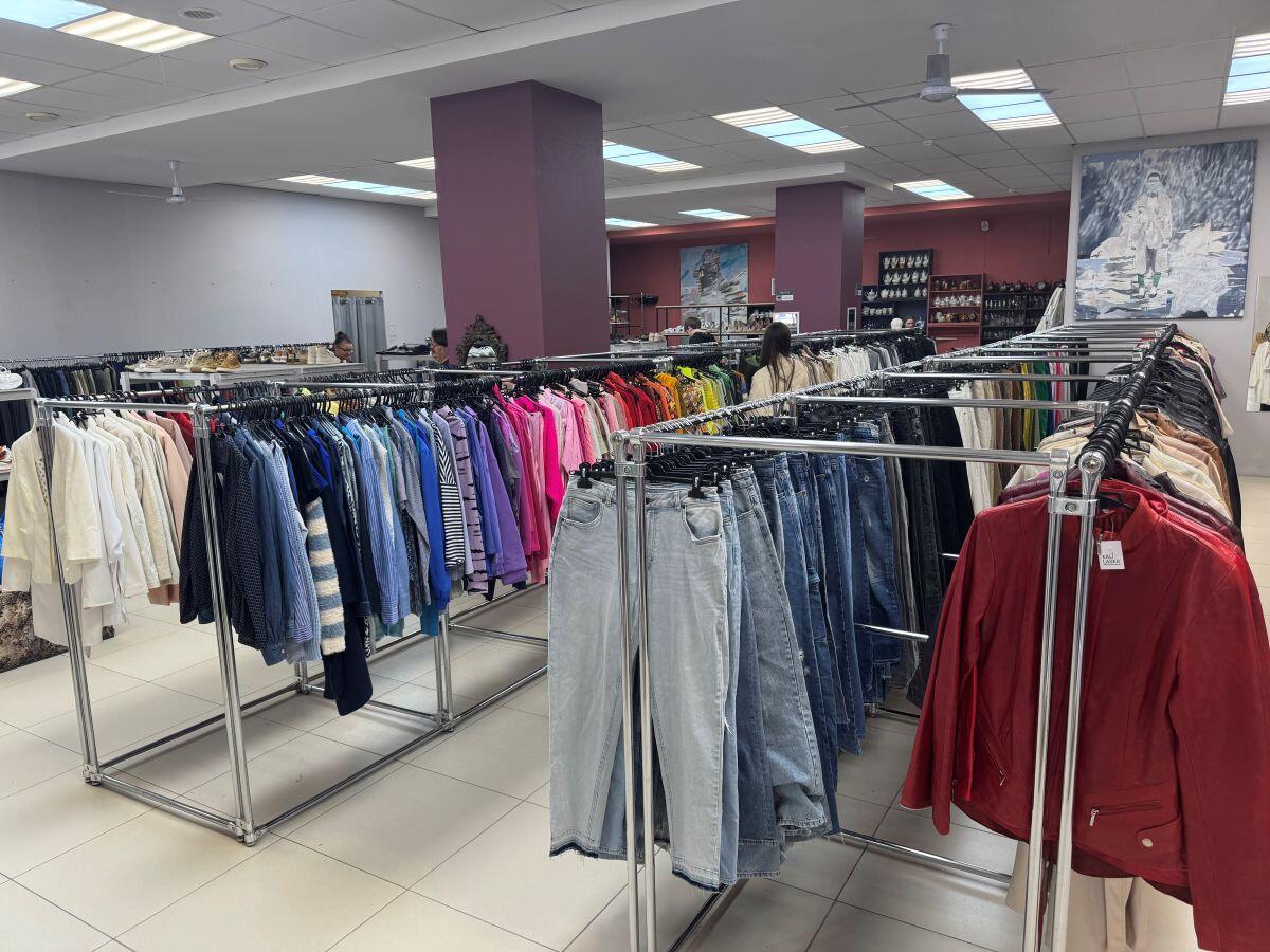 Также на барахолке большое количество акцентных вещей: кружевных топов и корсетов. Стоит отметить, что размерная сетка ограничена: большая часть вещей подойдет только для стройных девушек. В магазине нет спортивной формы и одежды для детей, поскольку такие вещи являются товарами первой необходимости и сразу передаются нуждающимся. По этой же причине в пространстве собрано скромное количество луков для мужчин. На вешалке обнаружены всего пара футболок с интересным принтом за 16–18 рублей, джинсы – от 25 рублей, несколько пиджаков и рубашек – до 30 рублей.
