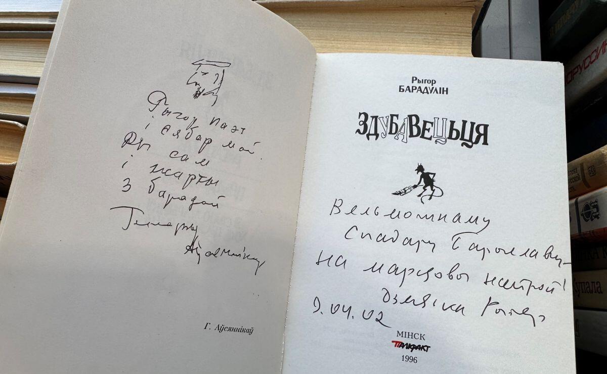 Самый дорогой лот, который удалось найти на книжных полках, оценили в 98 рублей. Это сборник Рыгора Барадуліна, изданный в 1996 году на белорусском языке и в первую очередь примечательный автографом писателя.