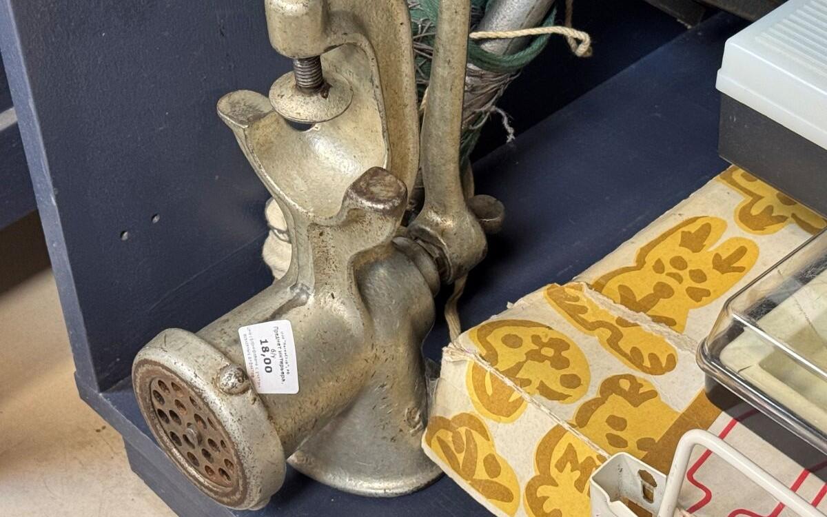 Также из полезных лотов имеются нитки для вязания по 4 рубля за моток, а вот забавную чашку можно прикупить по цене от 1 рубля до 15. Найдена советская форма для выпечки печенья за 35 рублей и ручная мясорубка за 18.