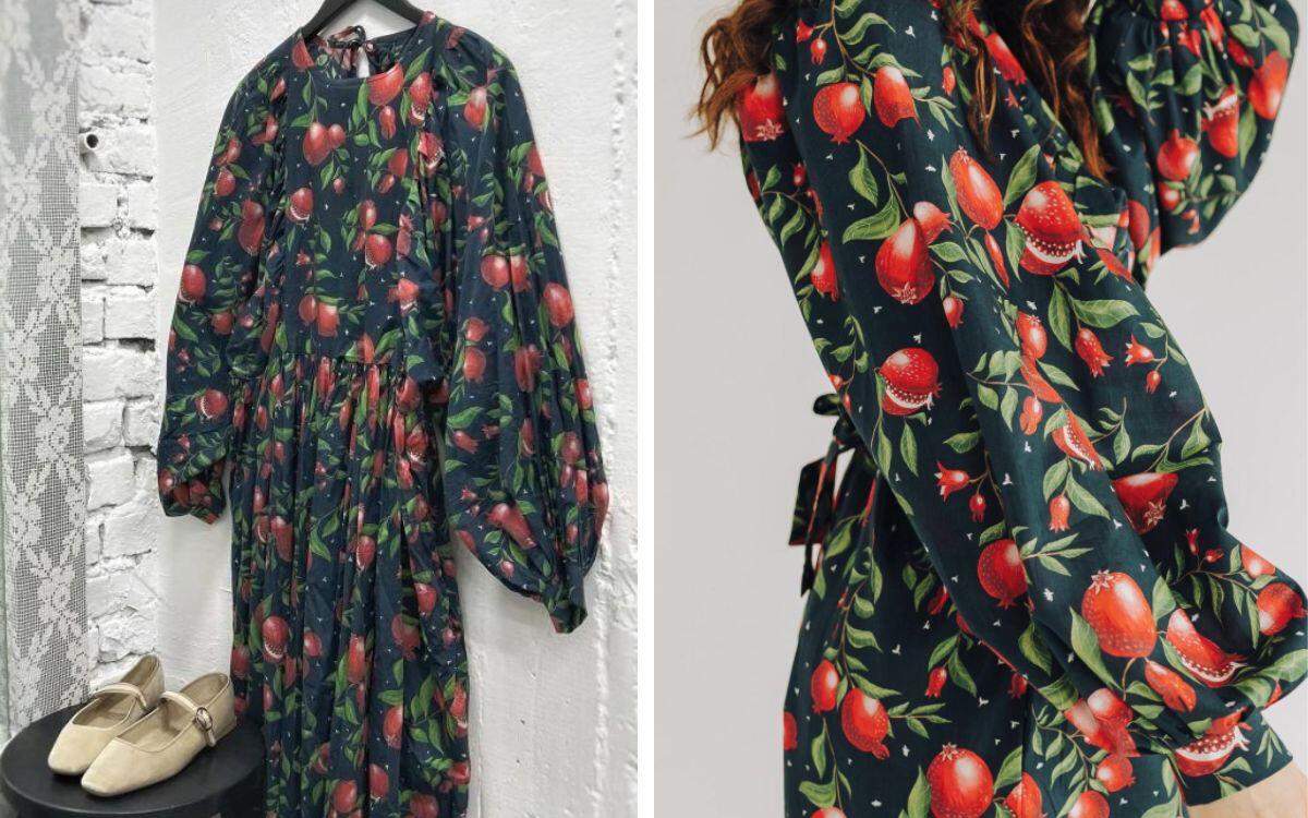 Платье от белорусского дизайнера Томы Прокофьевой с гранатовым принтом обойдется всего в 50 рублей, при этом изначальная стоимость наряда на сайте – 465 рублей. Приятная скидка составляет почти 90 %.
