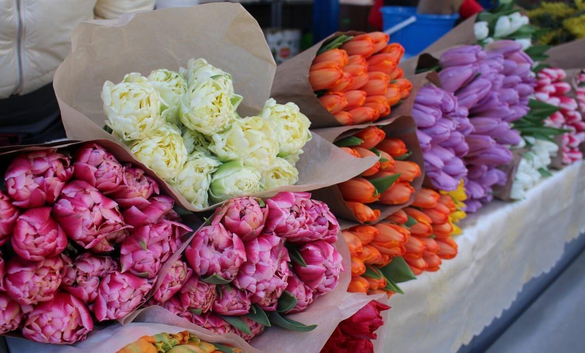 Популярные тюльпаны можно приобрести поштучно, в виде букетов, вместе с луковицами и в горшках. Но, конечно, доступны и другие цветы.