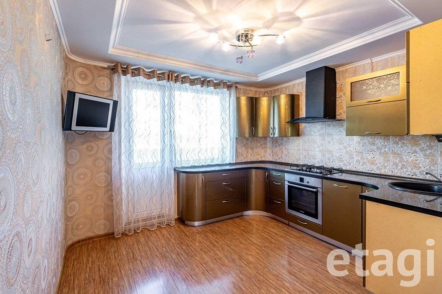 Здесь установлены двухкамерные стеклопакеты с детскими замками, потолки натяжные со встроенными светильниками, на полу ламинат. Установлена система кондиционирования воздуха. Остаются два шкафа-купе, которые позволяют грамотно организовать хранение вещей. А на кухне – гарнитур с новой газовой плитой и мойкой из искусственного камня.