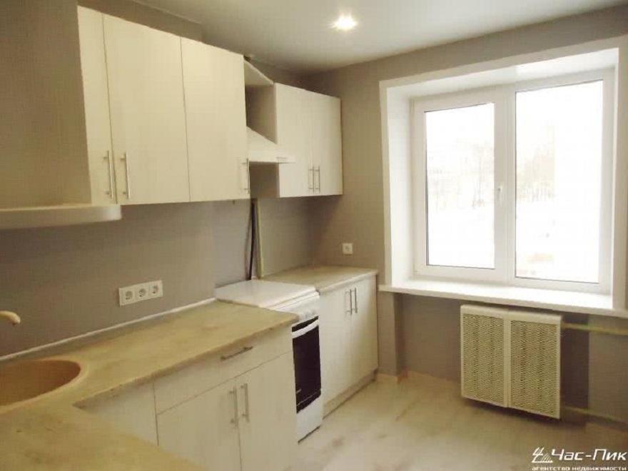 Это трешка с простой аккуратной отделкой: линолеум, ламинат, обои, потолки, пластиковые окна, плитка в санузле. Продается с кухней, где есть встроенная посудомоечная машина, духовой шкаф, газовая плита. Лоджия застеклена и облицована сайдингом изнутри.