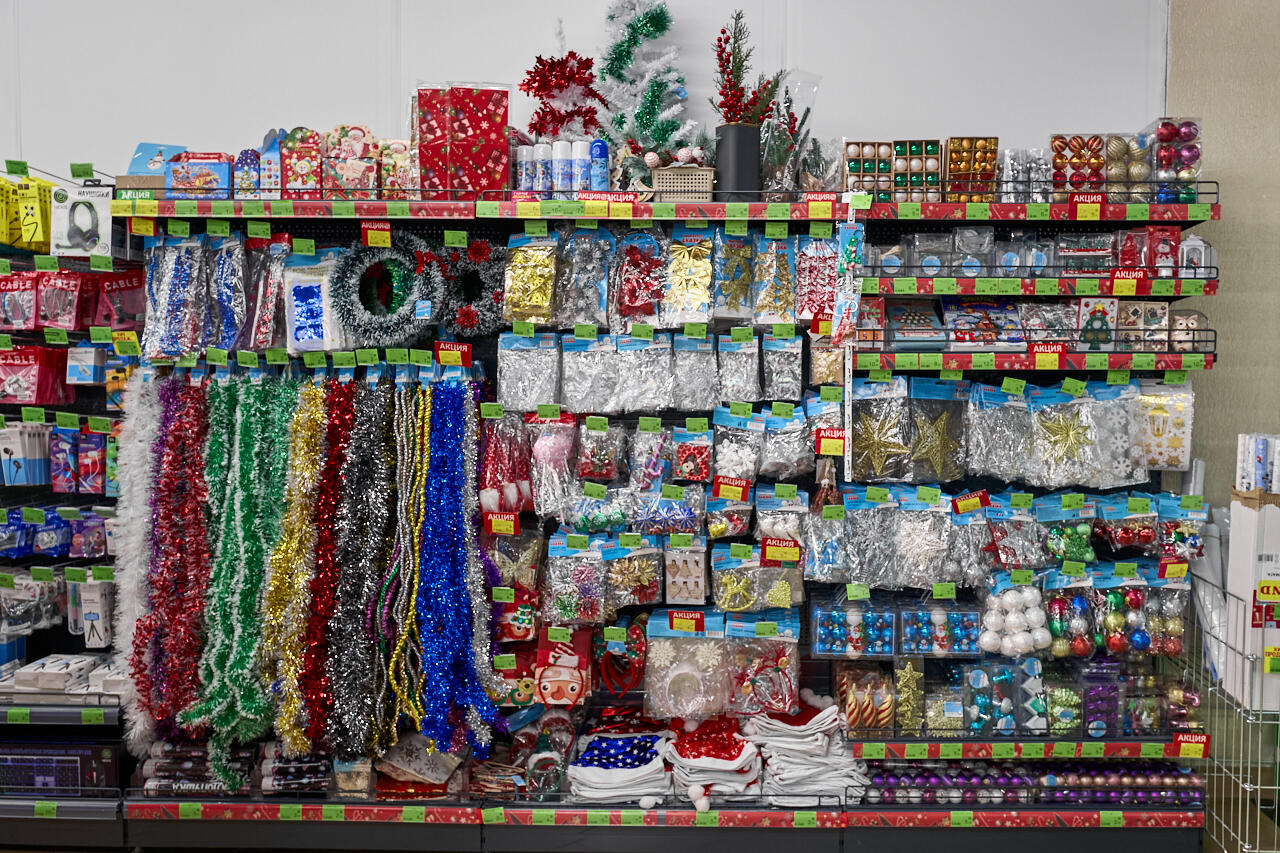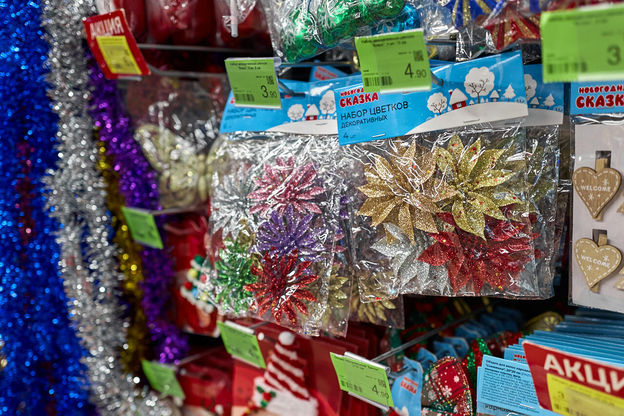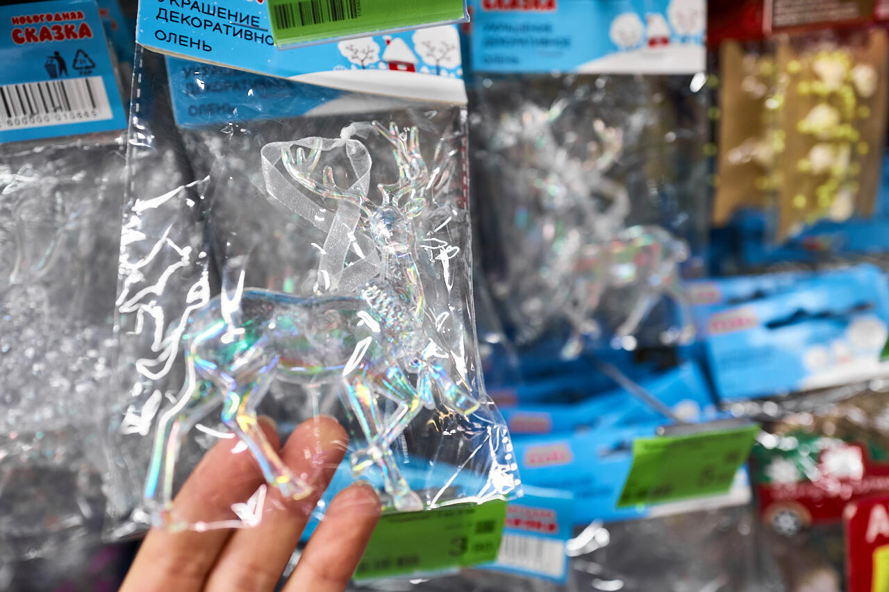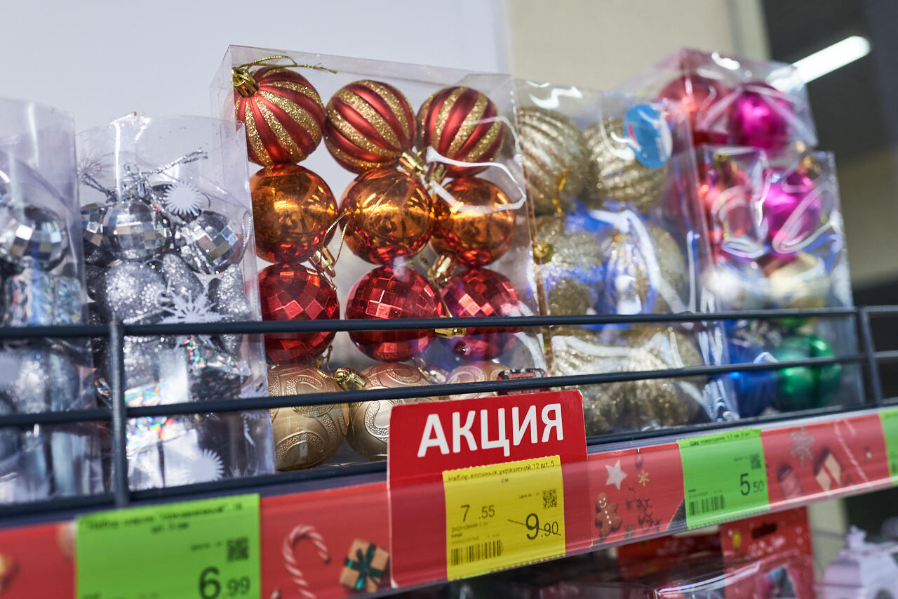 Все игрушки в магазине тщательно упакованы. Так продавцы заботятся о том, чтобы покупатели по случайности не повредили хрупкие изделия. Большая часть елочных украшений продается сразу с веревочками – это удобно, не придется тратить время.