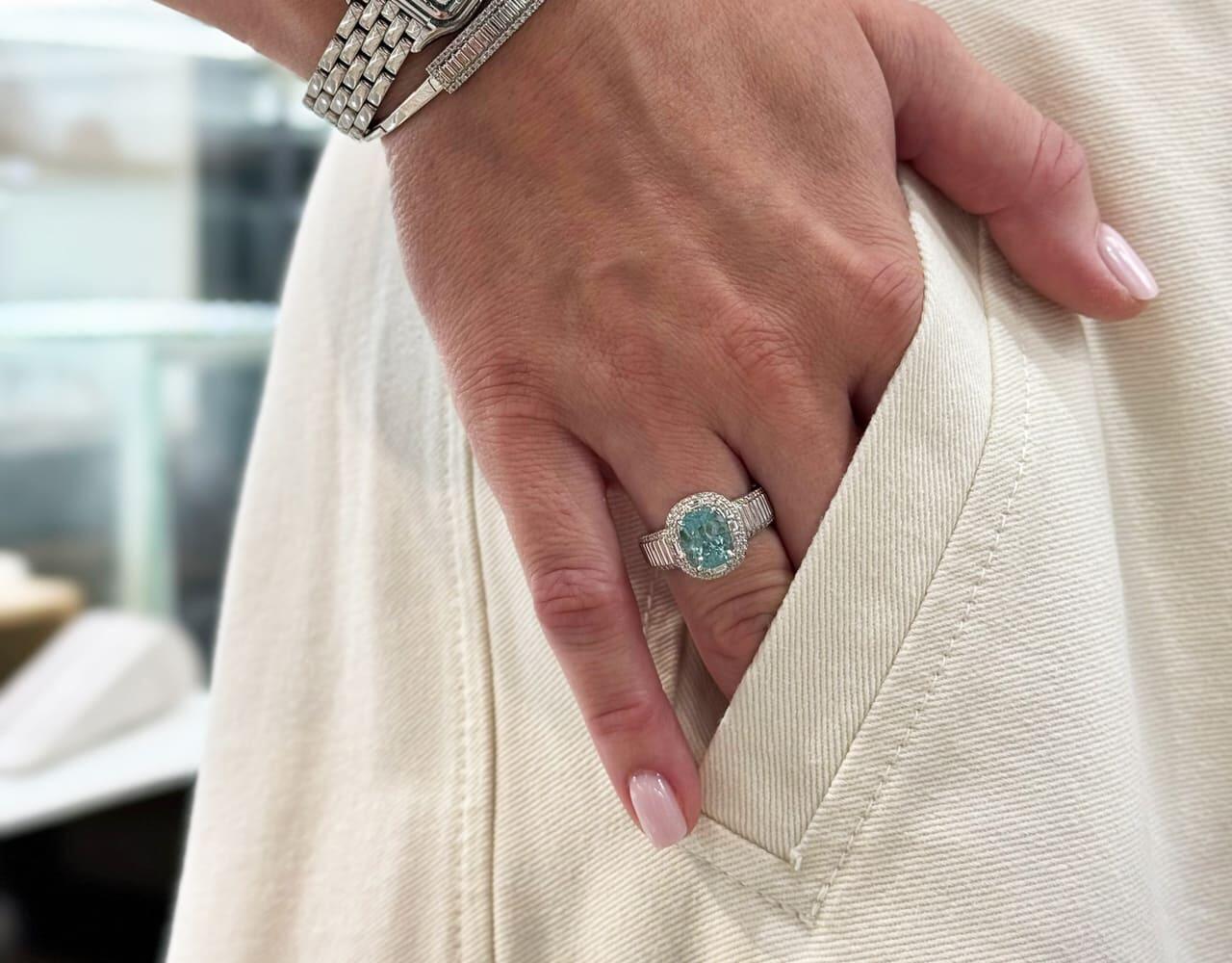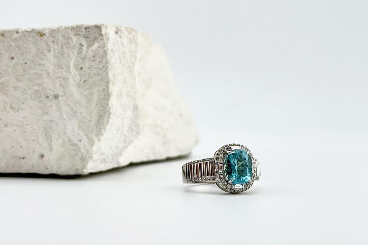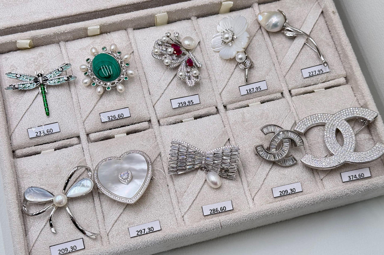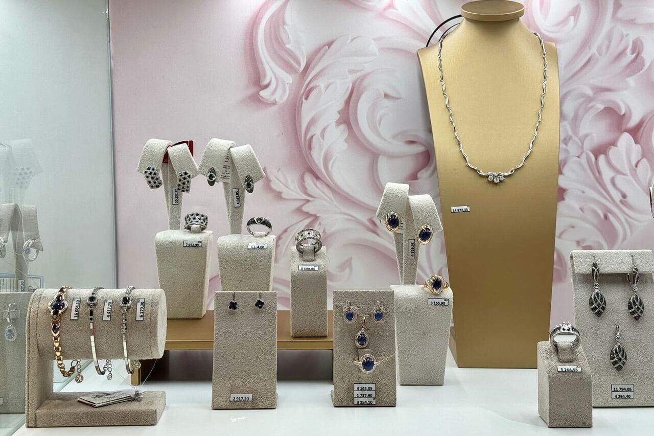 Еще один производитель – ERA JEWELLERY, представленный на выставке в ТЦ Dana Mall, делает акцент на редкие самоцветы, а именно на изделия с турмалином – камнем, находящимся на пике ювелирной популярности в 2025 году. Особое внимание на выставке заслуживают кольца с природным турмалином «Параиба» зеленовато-голубого оттенка и колье с красным турмалином огранки «груша» и массой более 6,7 карата. Это действительно редкие модели украшений для ювелирного рынка Беларуси.