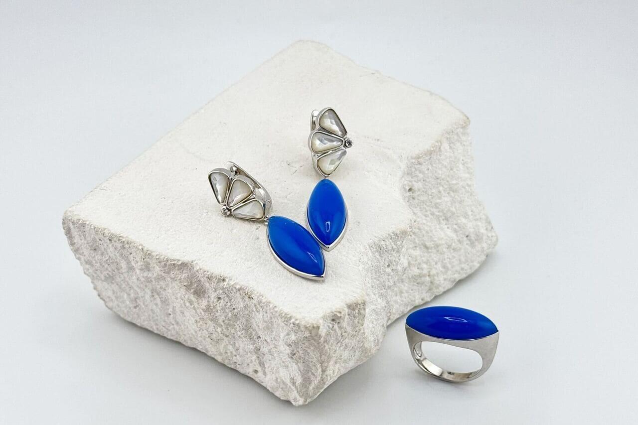 В отличие от других производителей, представленных в рамках выставки, ELEMENT47 делает ставку на серебро со вставками природных камней и переосмысливает роль этого драгоценного металла в украшениях.