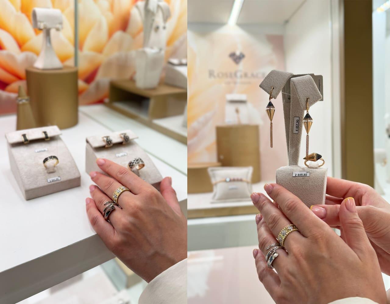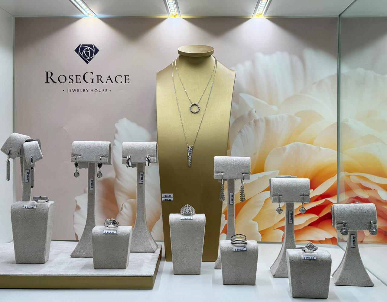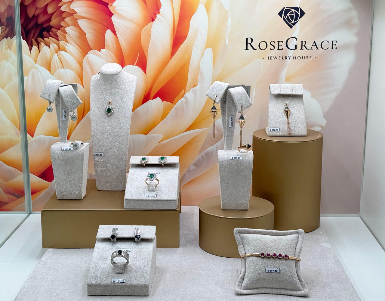 Особое внимание привлекает к себе бренд RoseGrace, ведь источником вдохновения для них стал образ невероятно красивой женщины, талантливой актрисы и княгини Монако Грейс Келли. Он представлен в салонах ORO в ТЦ Green City и ТЦ Expobel.