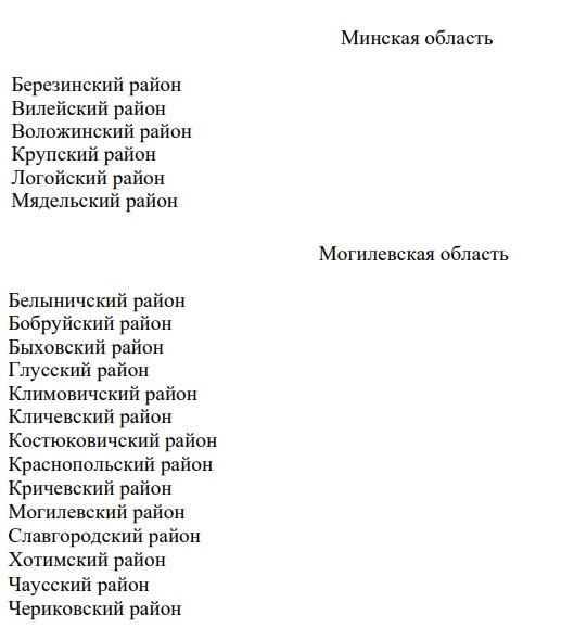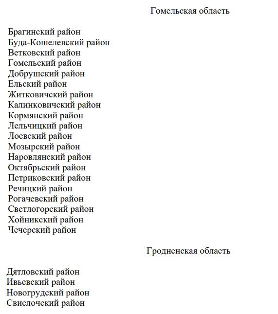 При этом в Гродненской области в перечень включили только 4 района, в Брестской области – 5.