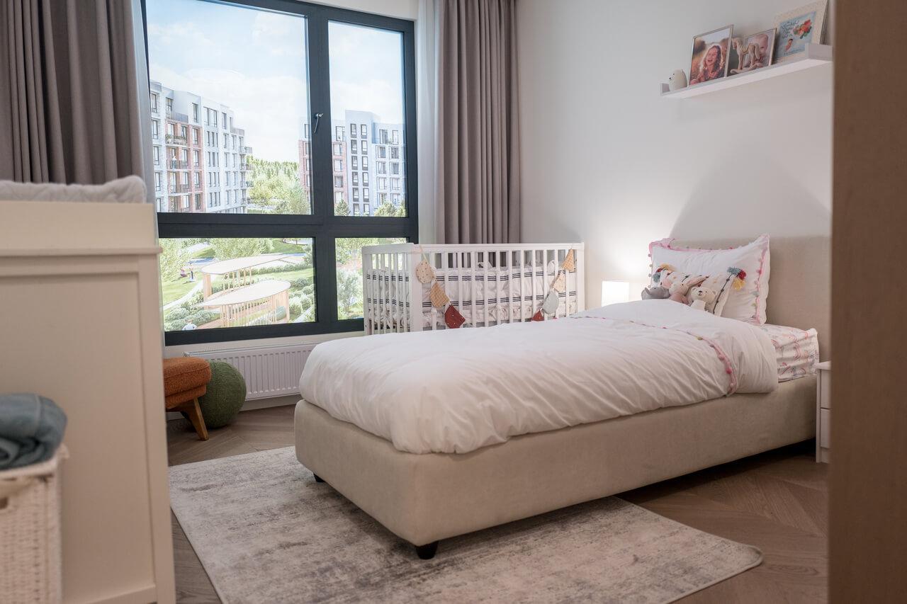 Стоимость зависит от площади, вида из окна, этажности и других нюансов. Средняя цена – 1700-1800€ за квадрат. Сдать дом планируют в мае 2025. Скоро приступят к возведению школы. Сдача детского сада намечена в следующем году.