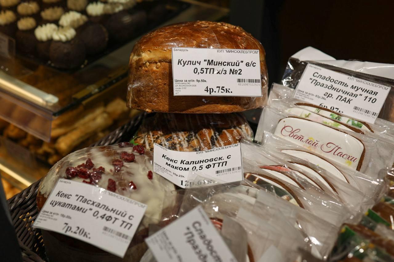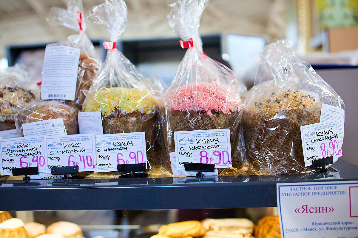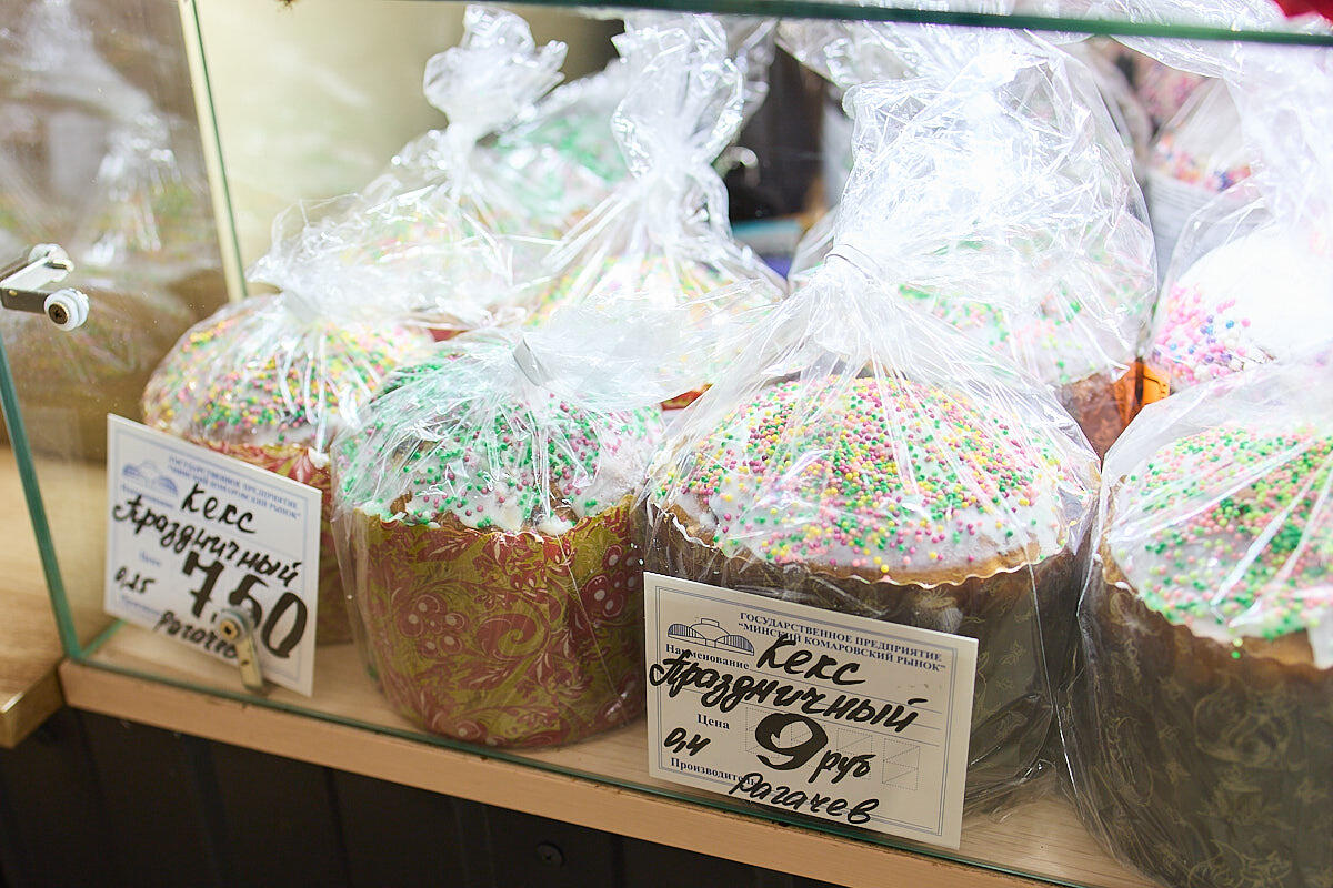 Отыскали и творожные куличи – 7,5 BYN за 320 г; 10 – за 470 г. Еще есть борисовские куличи за 8 BYN, рогачевские за 7,5–9 BYN.
