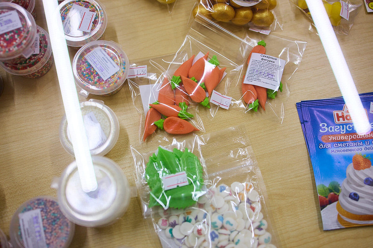Выбор огромный: цены за формы для куличей начинаются с 35 копеек, форма для пасхи – 6,4 BYN; посыпка – 1,6–1,9 BYN; украшения в виде яиц – 4,4 BYN; морковки и прочее – 1,5–2,2 BYN.