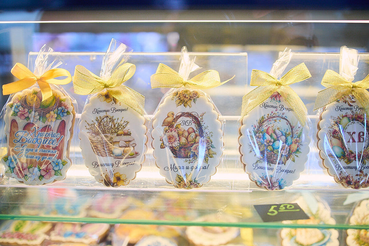 И если вы думали, что пряники все примерно в одном стиле, то ошиблись. Даже в пределах одного прилавка тематики разные. Как нам рассказала мастер Инна, сейчас в тренде – гжель, «русский стиль» и никуда не уходящая классика.