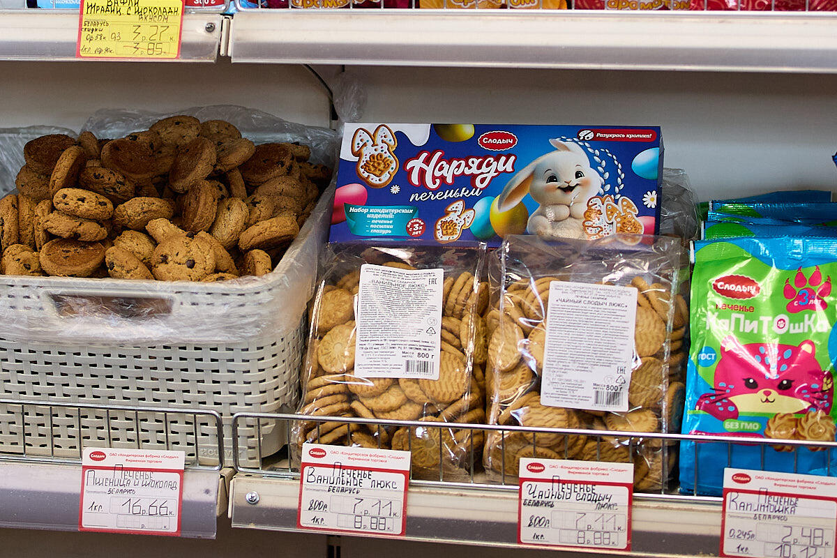 Для разнообразия и нового вкуса – апельсиновые печенья-кролики из Польши по 13 рублей. И, конечно, большие шоколадные зайцы по 21,5 BYN.