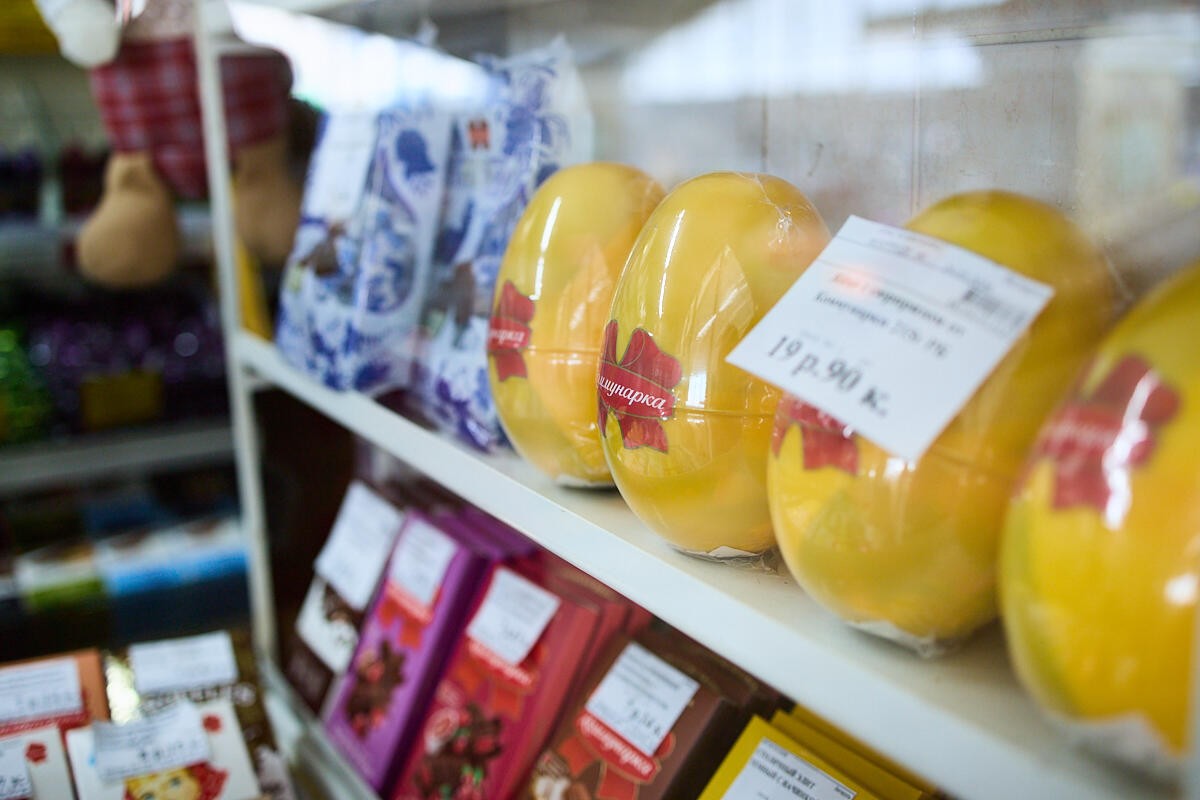 Килограмм продают за 42,63 рубля, но мы стали свидетелями взвешивания одной штучки – так выяснили, что одно шокояйцо стоит примерно 50 копеек. Приятный и бюджетный способ и стол украсить, и подарок укомплектовать. Продегустировали сами – и смело рекомендуем.