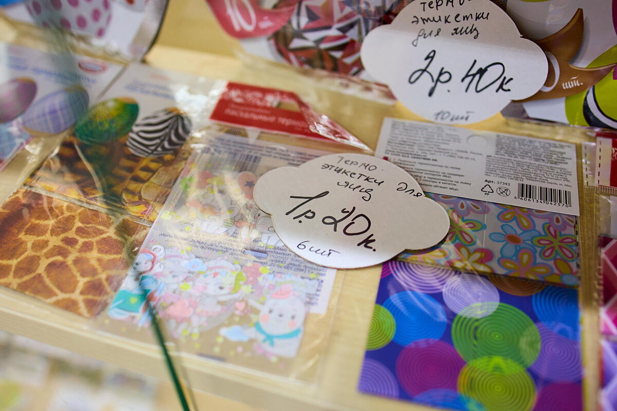 Наклейки на яйца – 30–50 копеек; термоэтикетки – 1,2 BYN. Наборы для декорирования – 3,4–4,9 BYN.