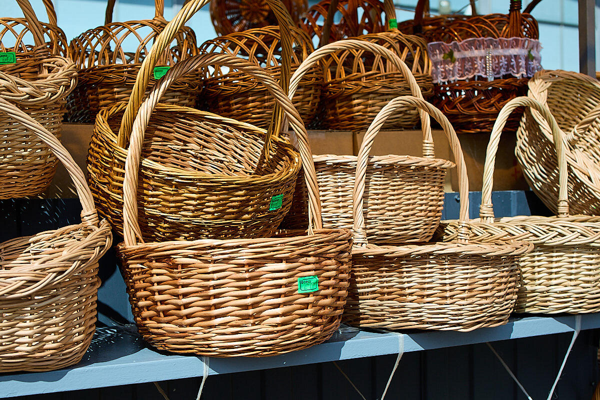 Начнем с корзинок. Если в вашем доме такой нет, ее можно купить на сезонном рынке. Мы нашли точку совсем рядом с монастырской лавкой. Цены стартуют от 35 BYN за самую маленькую и 65 BYN за достаточно объемную.