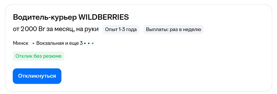 Мы нашли примерно два десятка вакансий компании ООО ИМВБРБ – официального юридического лица Willdberries в Беларуси. Давайте посмотрим кого ищут и сколько предлагают платить.
