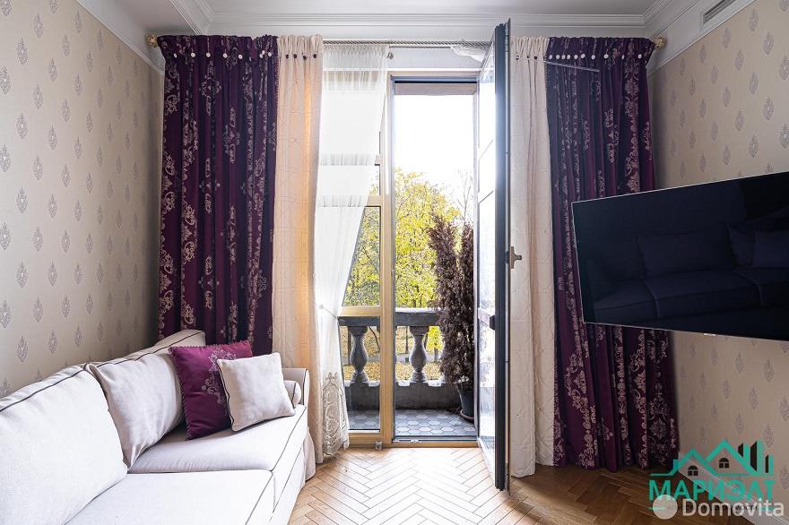 Высота потолков выше обычной: 3,2 метра. А также здесь два французских балкона с видом на парк Янки Купалы перед Белгосцирком.