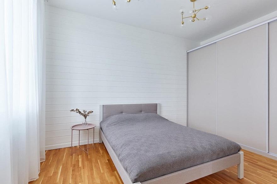 Двухкомнатная квартира на улице между стадионом Динамо и Центральным вокзалом в составе квартала, который образуют Ворота Минска. Из жилья общей площадью 57 квадратов здесь сделали евротрешку с двумя небольшими отдельными спальнями и просторной кухней-гостиной.