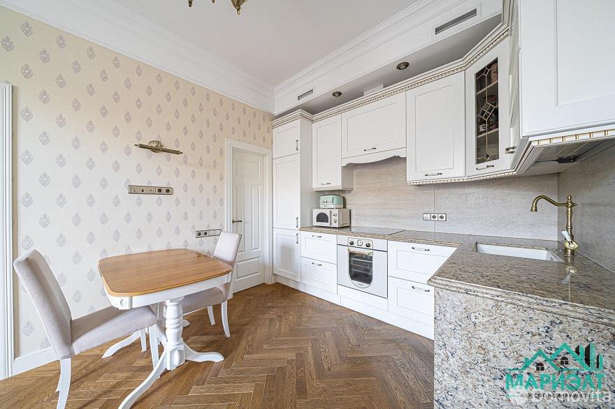 В квартире гипсовая лепнина, полы из дубового паркета, кухня из массива со всей встроенной техникой и вся остальная мебель с фотографий.