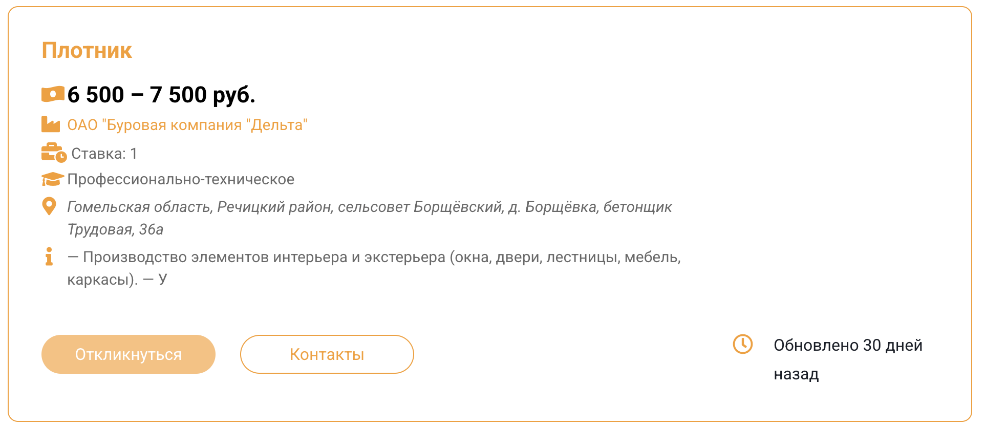 Плотник, зарплата от 6500 до 7500 рублей