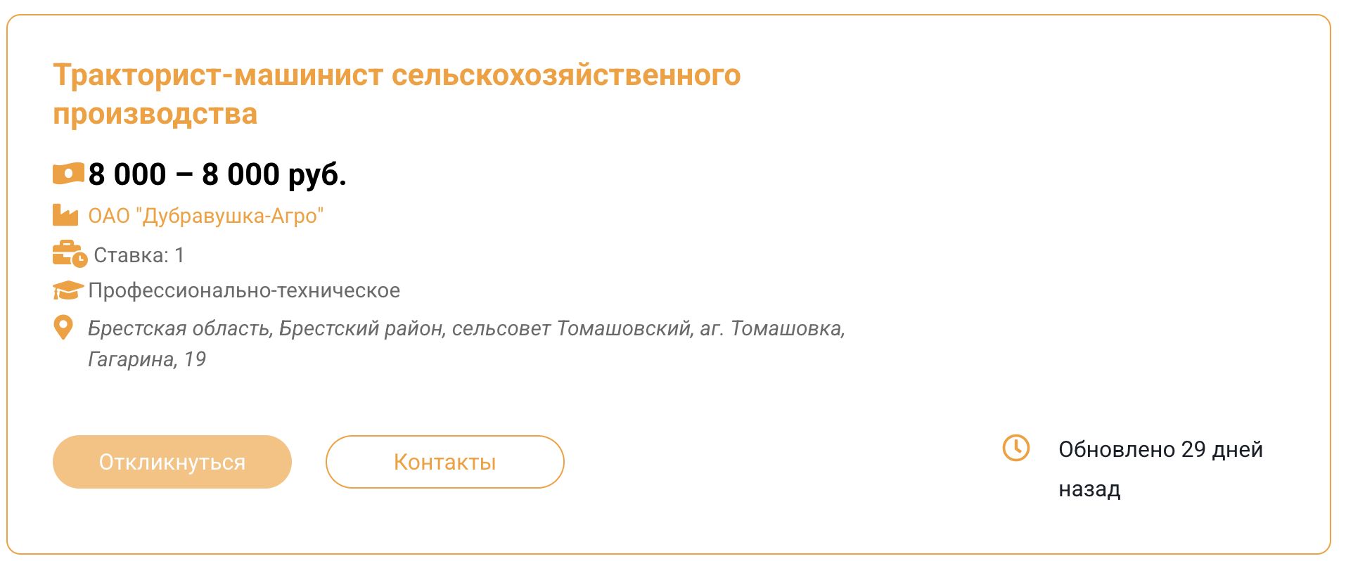 Тракторист-машинист, 8000 рублей