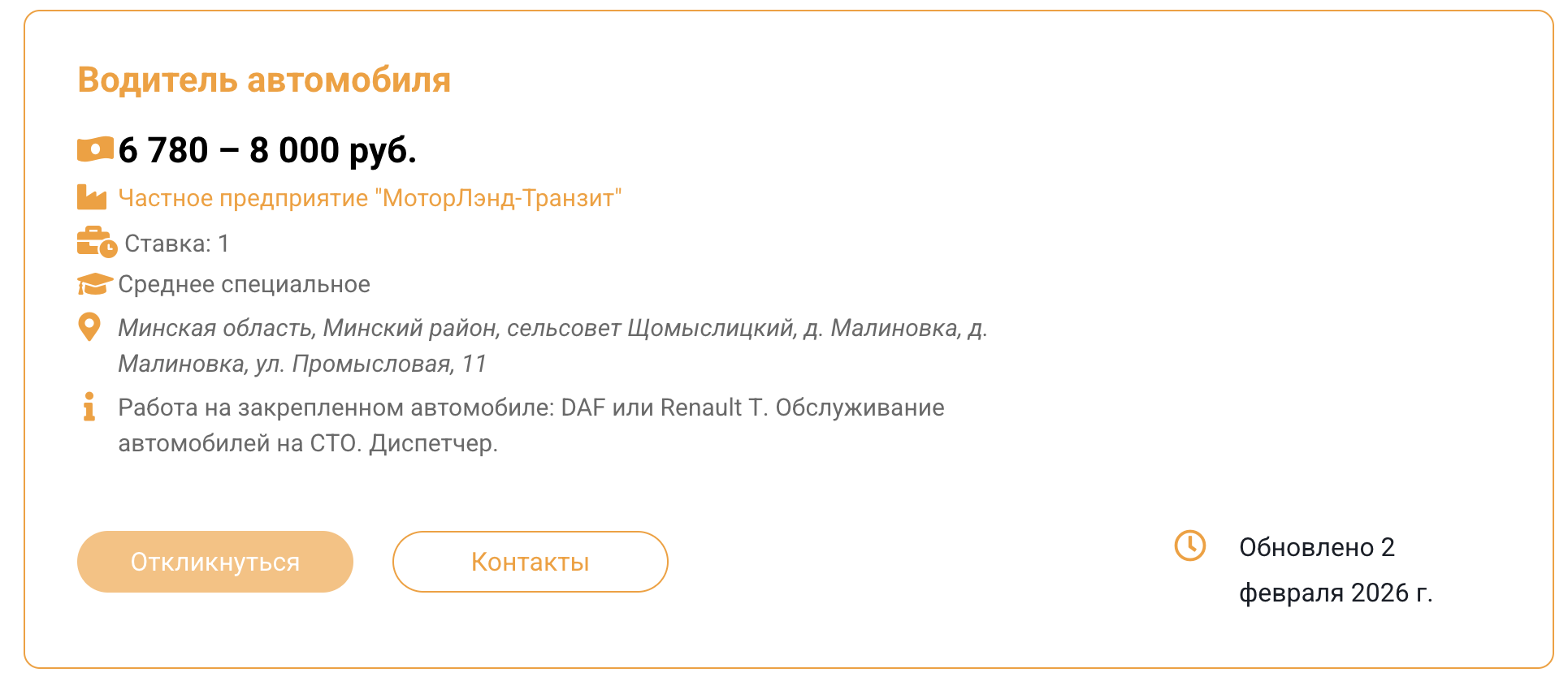 Объявление разместила компания «МоторЛэнд-Транзит».