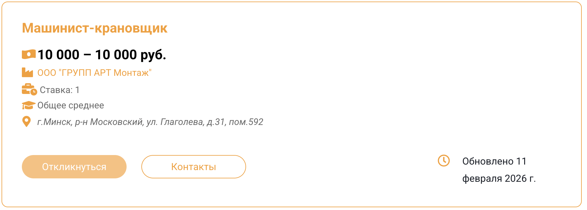 Соискатель – «ГРУПП АРТ Монтаж». Судя по информации в интернете, обучиться на крановщика можно за 14 недель.