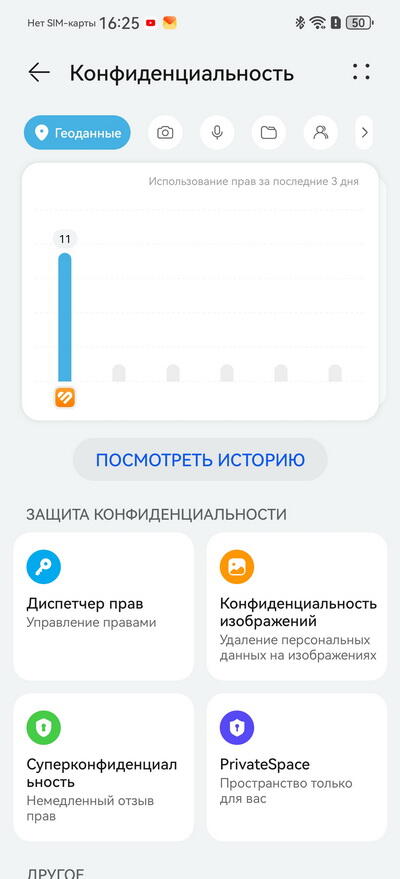 Чтобы личные данные пользователя не ушли, куда не надо, в Huawei Pura 70 дополнительно предусмотрен Центр конфиденциальности. Он показывает, как часто и, главное, какие именно приложения получают доступ к личным данным с помощью простой и интуитивно понятной панели мониторинга.