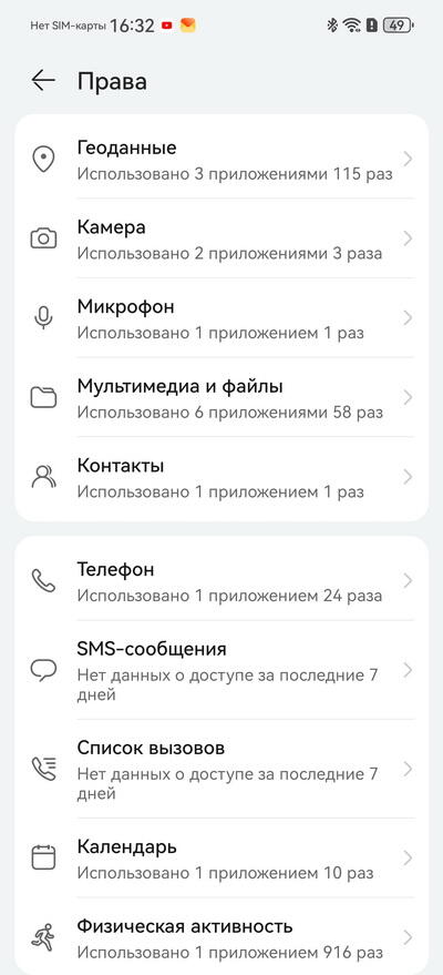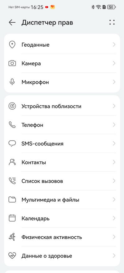 встроенный диспетчер прав позволяет быстро узнать, какие приложения имеют