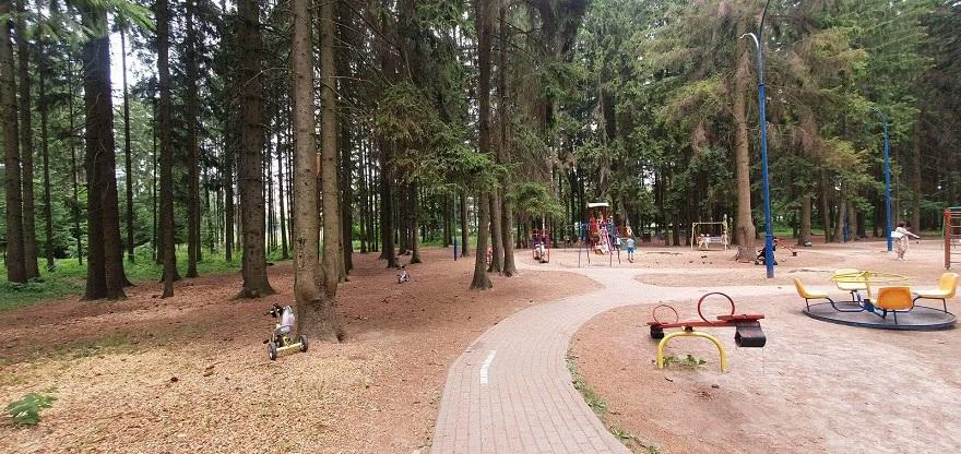 Это безымянный парк по улице Притыцкого, через дорогу от торгового центра Скала. Здесь нет обустроенных дорожек и скамеек, зато парк изрезан множеством тропинок. Там густая зелень и небанальный ландшафт.