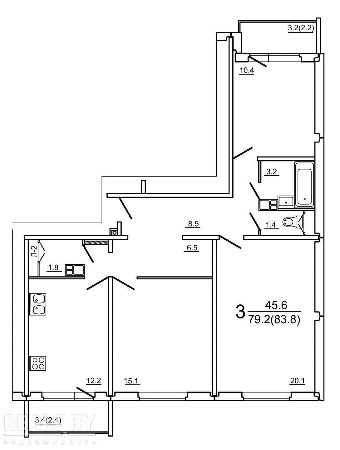 При стопроцентной оплате в течение пяти дней такая «трёшка» обойдется в 112 200 долларов. Застройщик обещает стеклопакеты, консьержа и подземную парковку. Квартиры, само собой, без отделки.