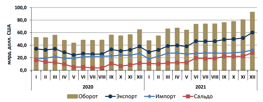 Что касается внешнего экспорта всего Евразийского экономического союза, то по сравнению с 2020 годом он увеличился на 44,1%, ($ 160,9 млрд.). Причем среди всех стран-участниц объединения лидером роста стала Беларусь: экспорт белорусских товаров в страны, не входящие в ЕАЭС, увеличился на 47,8%.