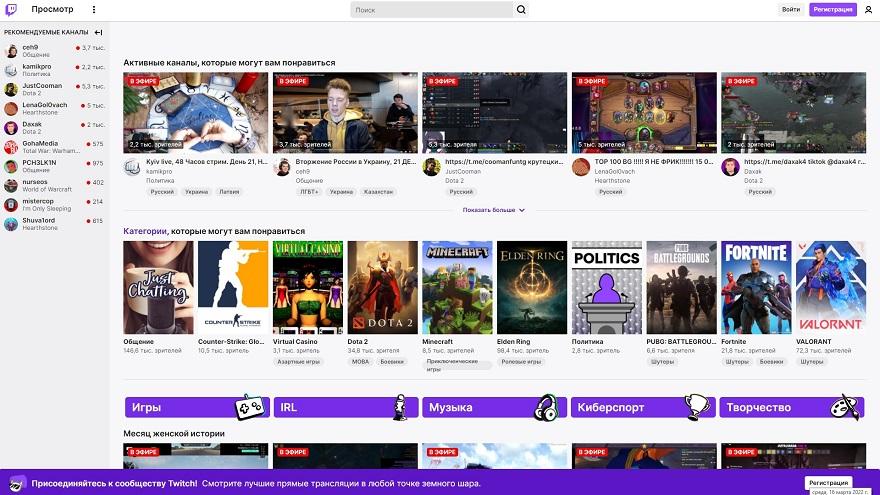 Сейчас основной аудиторией видеохостинга являются геймеры, разработчики игр, приложений и тому подобного. Контент на нем тоже соответствующий и включает в себя, к примеру, стримы киберспортивных состязаний и уроки программирования. Помимо этого, на Twich осуществляются спортивные (к примеру, матчей НБА) и музыкальные трансляции.