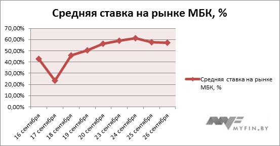 Конец сентября остается напряженным для рынка межбанковского кредитования. Ставки в новом периоде формирования резервных требований, который начался 18 сентября, сохраняются в диапазоне 50-60% годовых по кредитам в национальной валюте. Тренд рынка преимущественно восходящий.