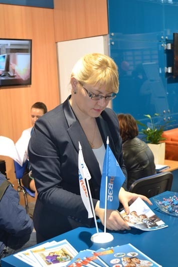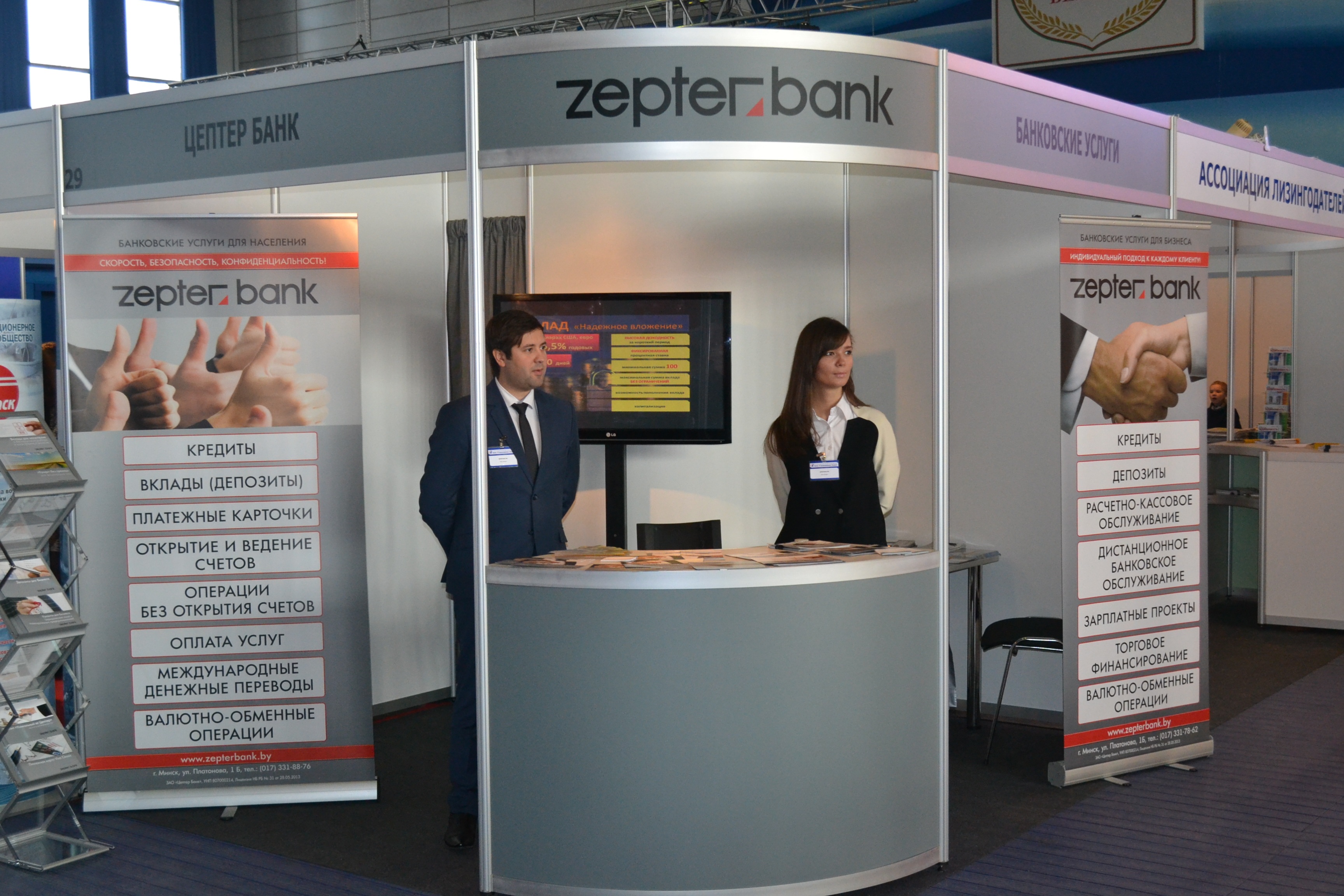 О своих услугах у выставочного стенда рассказывают представители Цептер Банка.
