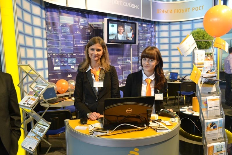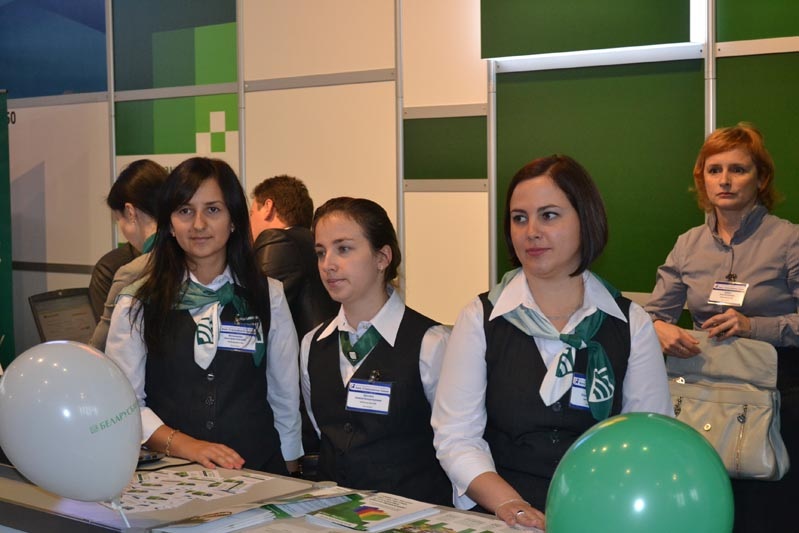 Трастбанк и Белгазпромбанк тоже ударили по безналу. Первый раздает флаеры, позволяющие стать участником акции «За полцены», в рамках которой посетители выставки могут превратиться в держателей престижной карты VisaGold всего за $20 без размещения гарантийного депозита (в данном случае 500 000 рублей).Обворожительные представительницы Белгазпромбанка раздают на выставке скидочные купоны на оформление платежной карты со скидкой 50%.
