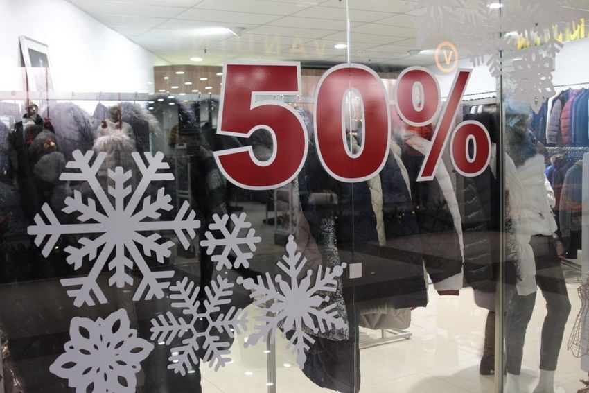 Следуем их совету и навещаем бутик на витринах которого красуется «Скидка 50%».