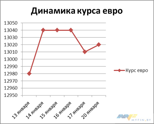 Евро на торгах понедельника сделал прорыв сразу на 60 рублей и «впал в спячку». 17 января курс «европейца» упал до 13 010, но уже на следующий день вырос до 13 020.